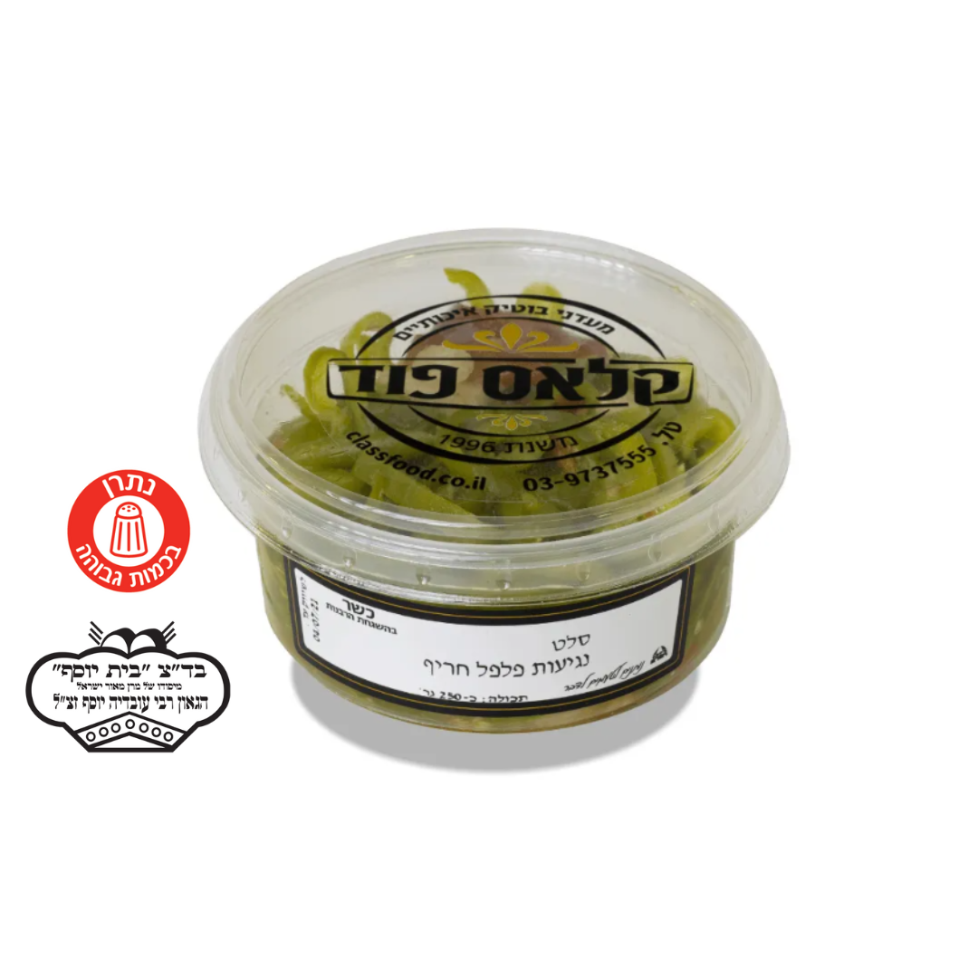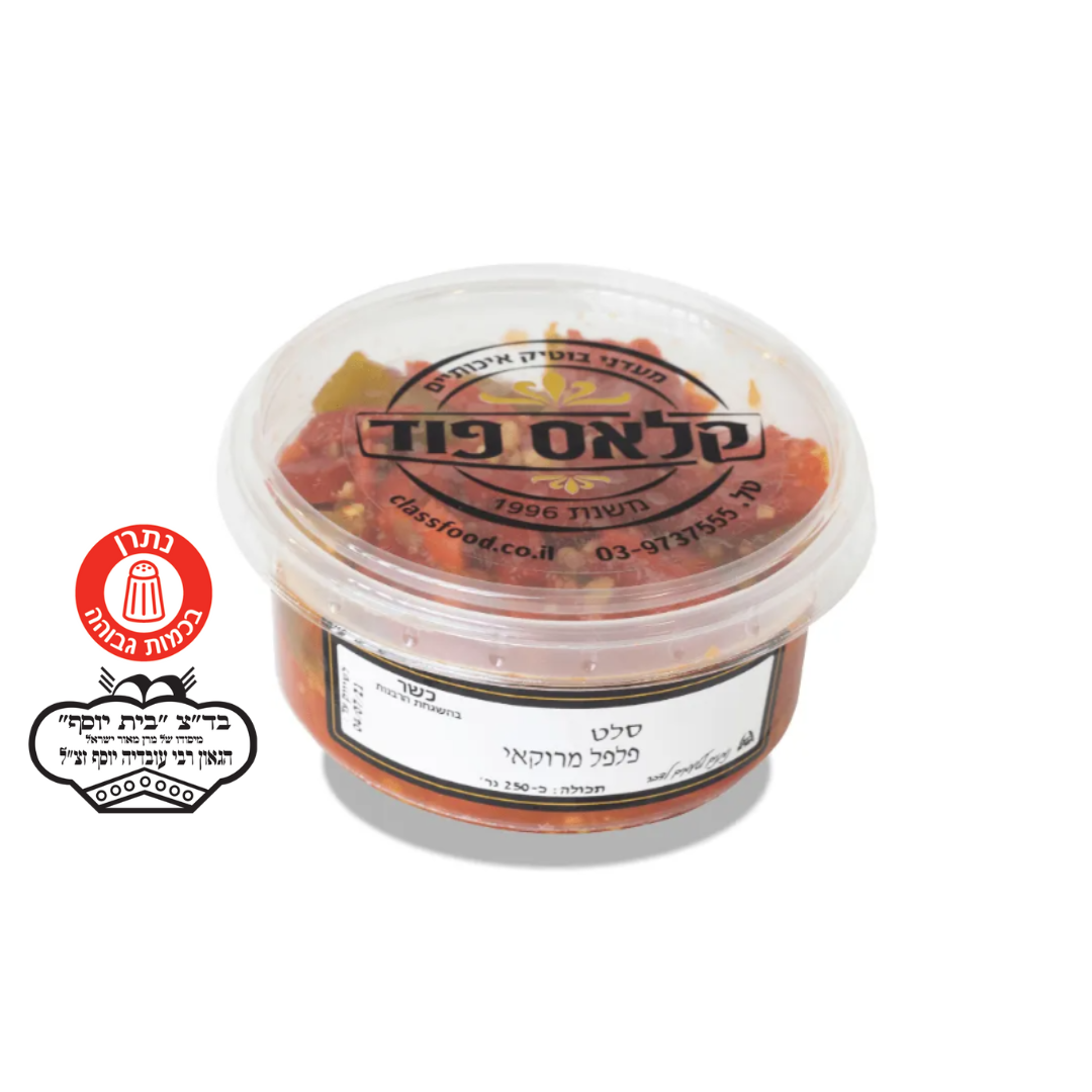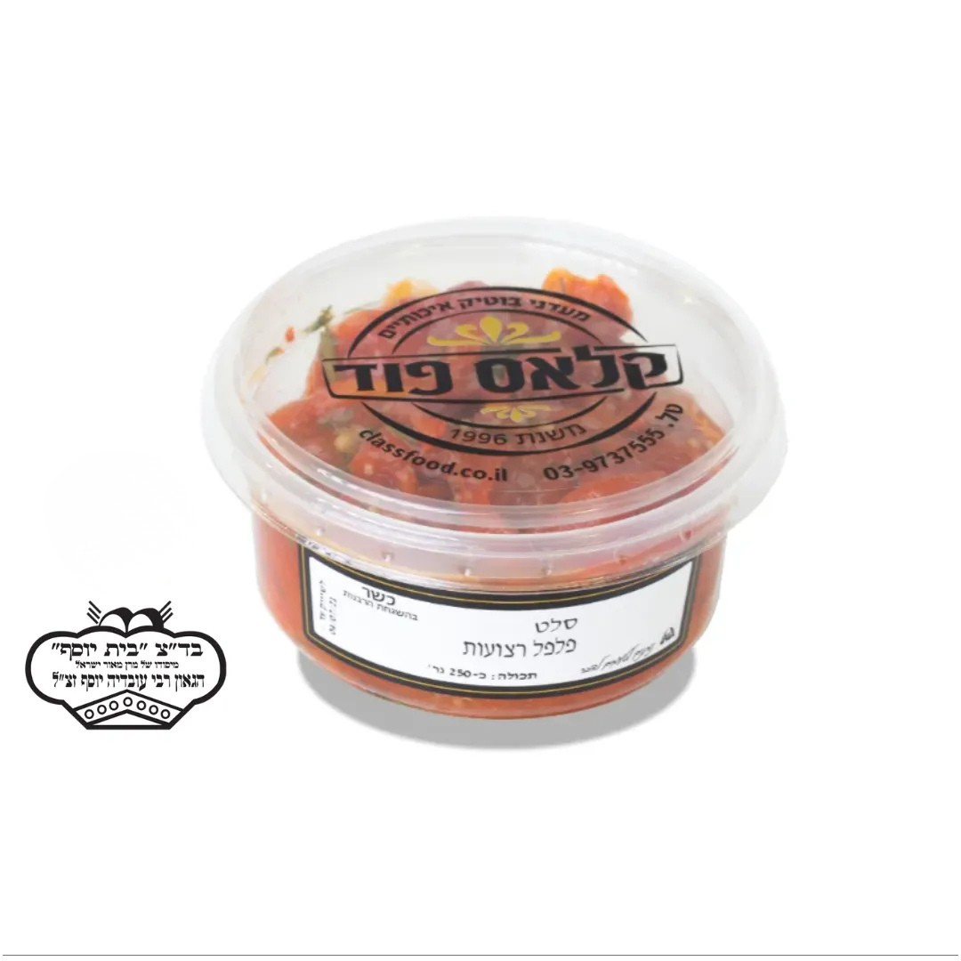 ממגוון פלפלים לבחירתכם. בקלאס-פוד 130 סלטים שונים. מגיע באריזות של 200-500 גר' ואריזות של 4-2 ק"ג.